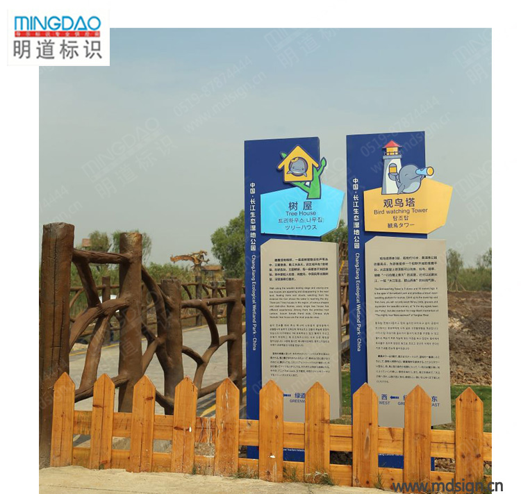 總導覽牌、戶外顯示屏、導向牌、景點介紹牌、停車場指示牌、多向指示牌、花草牌、溫馨提示牌及門牌等標識標牌。這套