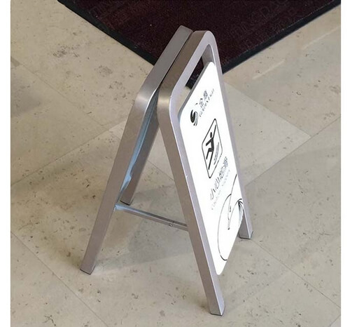 明道標識:不銹鋼A字警示牌_小心地滑警示牌_不銹鋼提示牌成品展示