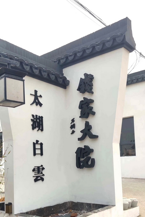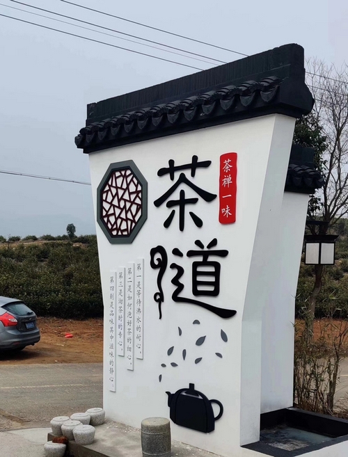 錢家大院的裝修風格以江南水鄉的粉墻黛瓦為基調,以新中式為主導,loft現代風和江南古典民風為點綴,園林、石雕、透漏、曲徑、庭院為特色。錢家大院的招牌和背景墻由常州明道標識設計制作,沿用了中式風格和茶道的文化的圖文展示,讓錢家大院的介紹醒目直觀的展現。